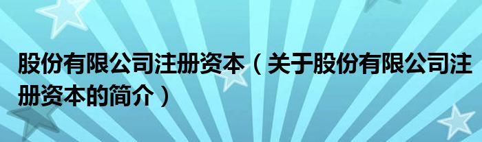 本文关于股份有限公司注册资本的简介就讲解完毕,希望对大家有所帮助。