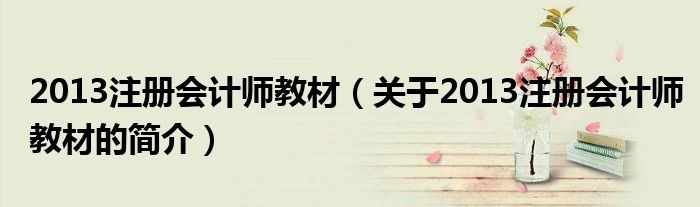 大家好,2013注册会计师教材,关于2013注册会计师教材的简介很多人还不知道,现在让我们一起来看看吧!