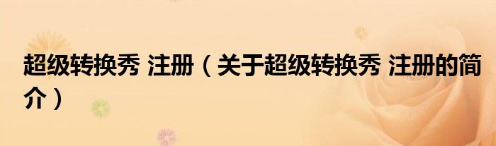 大家好,超级转换秀 注册,关于超级转换秀 注册的简介很多人还不知道,现在让我们一起来看看吧!