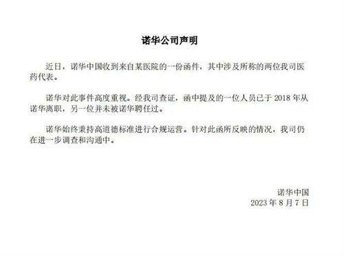 在网络上传播的图片能够看到,上海长征医院向上海诺华贸易有限公司,以及北京诺华制药有限公司发送了两份处理建议函,要求将涉案医药代表徐胜利,陈梦玮,孟婷婷,李小娟一共4人做出调理岗位或者开除的处理,诺华证实近日确实收到了来自某医院的函件,涉及到所称的两位医药代表,诺华表示对这个事件也高度重视,在建议函当中一位人员2018年已经离职了,另外一位也从未被诺华聘任,目前表示只收到一份函件,诺华表示公司进行系统的核查。