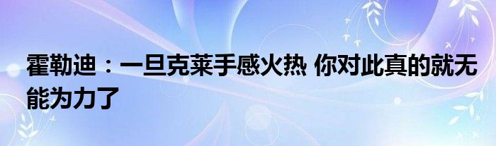 谈到克莱-汤普森时,霍勒迪表示:“一旦克莱手感火热,你对此真的就无能为力了。”