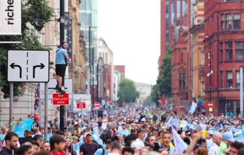 无数曼城球迷聚集在大街上,可谓是人山人海,大雨也无法浇灭大家的热情,在球迷的欢呼声中球员们纷纷站在大巴的车顶,向所有人展示获得的三座冠军奖杯。哈兰德的兴致很高,跟随音乐舞动,还在直播镜头下将香槟浇到了格拉利什的头上,此时此刻的曼市街头已经是一片蓝色的汪洋,到处都弥漫着胜利的味道。