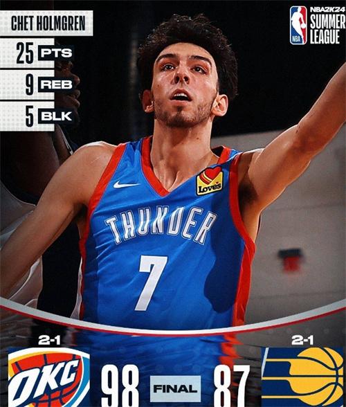 在雷霆对阵步行者的比赛中,雷霆以98-87战胜对手,送给步行者本赛季夏季联赛的首败。复出的霍姆格伦成为雷霆的亮点,他贡献25分、9篮板和5盖帽的华丽数据,带领球队获胜。此外,乌斯曼-迪昂和贾里德-巴特勒也有出色的表现。