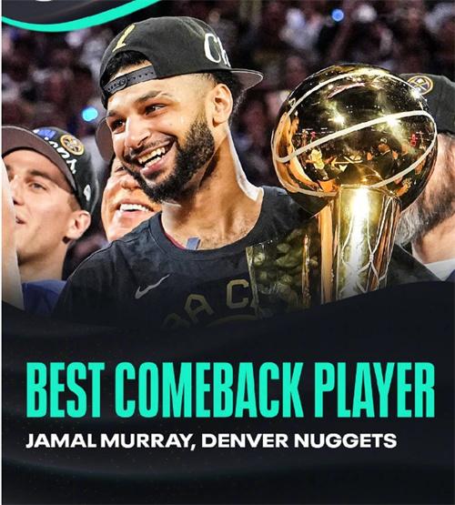 贾马尔-穆雷的复出之路可谓充满了艰辛和挑战,但他展现出了强大的意志力和恢复能力。他通过努力和坚持,战胜了伤病,再次回到球场,并取得了辉煌的成就。这个“最佳复出运动员”奖项是对他坚持不懈、迎难而上的肯定和赞扬。