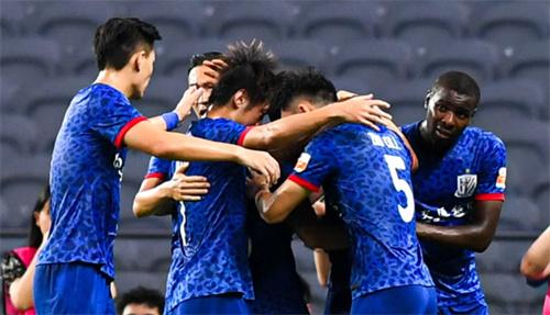 第4分钟,上海申花队进行反击,曹赟定进行远射球打偏飞出。