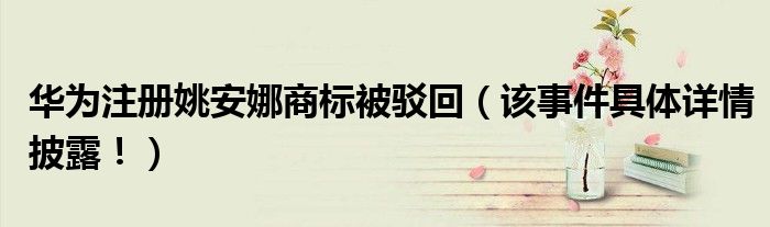 大家好,综合小编来为大家讲解下。华为注册姚安娜商标被驳回,该事件具体详情披露!很多人还不知道,现在让我们一起来看看吧!