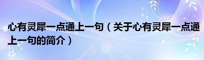 本文关于心有灵犀一点通上一句的简介就讲解完毕,希望对大家有所帮助。
