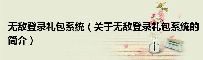 大家好,无敌登录礼包系统,关于无敌登录礼包系统的简介很多人还不知道,现在让我们一起来看看吧!