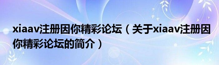 本文关于xiaav注册因你精彩论坛的简介就讲解完毕,希望对大家有所帮助。
