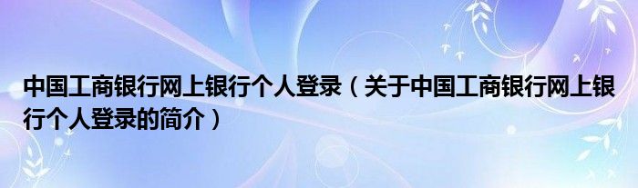 本文关于中国工商银行网上银行个人登录的简介就讲解完毕,希望对大家有所帮助。