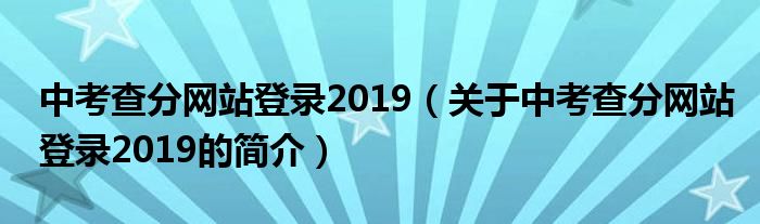 本文关于中考查分网站登录2019的简介就讲解完毕,希望对大家有所帮助。