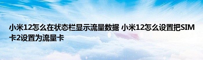 大家好,小柏来为大家解答以上问题。小米12怎么在状态栏显示流量数据,小米12怎么设置把SIM卡2设置为流量卡很多人还不知道,现在让我们一起来看看吧!