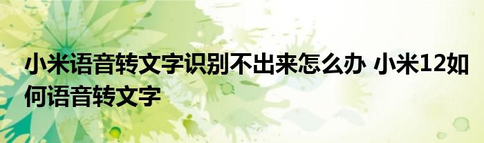 大家好,小柏来为大家解答以上问题。小米语音转文字识别不出来怎么办,小米12如何语音转文字很多人还不知道,现在让我们一起来看看吧!