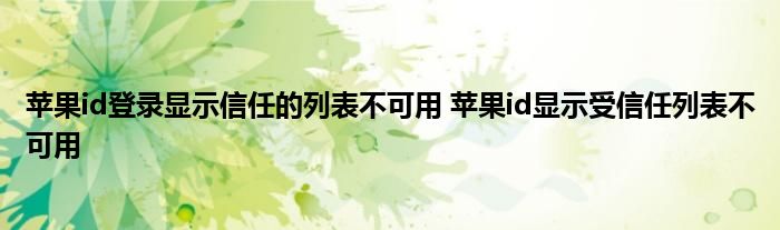 大家好,小詹来为大家解答以上问题。苹果id登录显示信任的列表不可用,苹果id显示受信任列表不可用很多人还不知道,现在让我们一起来看看吧!