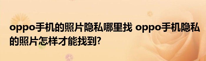 大家好,小詹来为大家解答以上问题。oppo手机的照片隐私哪里找,oppo手机隐私的照片怎样才能找到?很多人还不知道,现在让我们一起来看看吧!