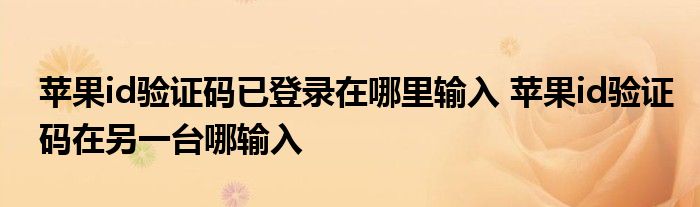 大家好,小詹来为大家解答以上问题。苹果id验证码已登录在哪里输入,苹果id验证码在另一台哪输入很多人还不知道,现在让我们一起来看看吧!