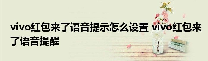 大家好,小詹来为大家解答以上问题。vivo红包来了语音提示怎么设置,vivo红包来了语音提醒很多人还不知道,现在让我们一起来看看吧!