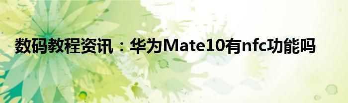 华为Mate 10有NFC功能吗相关内容,希望对你有帮助。