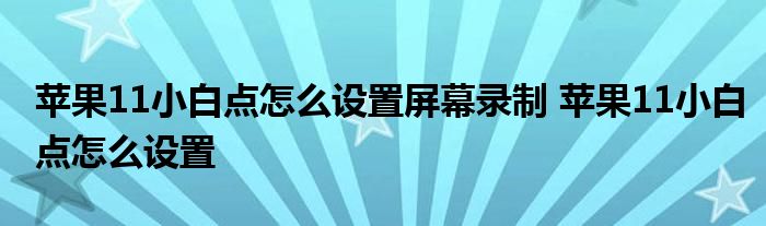 大家好,小琪来为大家解答以上问题。苹果11小白点怎么设置屏幕录制,苹果11小白点怎么设置这个很多人还不知道,现在让我们一起来看看吧!