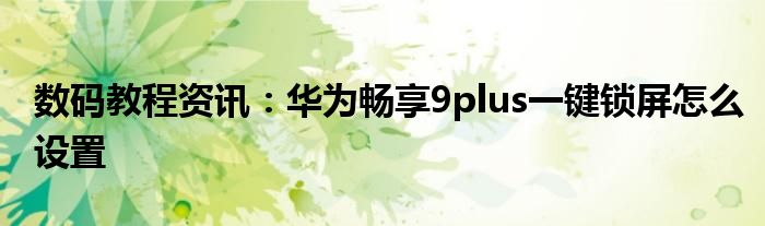 现在各种各样的数码设备在我们的生活当中几乎可以说是无处不在,平时我们使用的手机,IP,电脑等等这些都属于数码设备,那么这些数码设备当中会存在着很多的功能,当然在我们使用的过程当中自然也会出现说各种的问题,那么我们如何才能去解决这些问题以及使用好这些功能呢?这个时候就需要我们去了解这些功能及问题的解决方法,今天小编就来给大家分享下,关于华为畅享9plus一键锁屏怎么设置方面的问题及功能的详细内容,希望下面小编为大家分享的内容对大家来说有一定的帮助哦。华为畅享9plus一键锁屏怎么设置?
