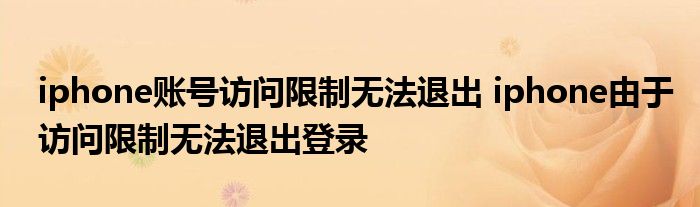 大家好,小詹来为大家解答以上问题。iphone账号访问限制无法退出,iphone由于访问限制无法退出登录很多人还不知道,现在让我们一起来看看吧!