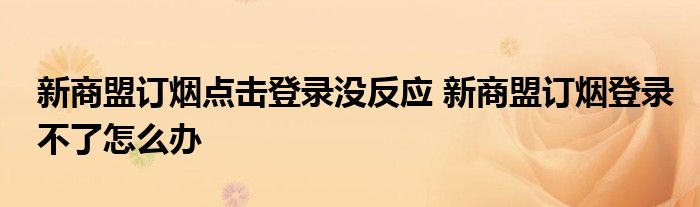 大家好,小琪来为大家解答以上问题。新商盟订烟点击登录没反应,新商盟订烟登录不了怎么办这个很多人还不知道,现在让我们一起来看看吧!