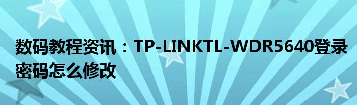 现在各种各样的数码设备在我们的生活当中几乎可以说是无处不在,平时我们使用的手机,IP,电脑等等这些都属于数码设备,那么这些数码设备当中会存在着很多的功能,当然在我们使用的过程当中自然也会出现说各种的问题,那么我们如何才能去解决这些问题以及使用好这些功能呢?这个时候就需要我们去了解这些功能及问题的解决方法,今天小编就来给大家分享下,关于TP-LINKTL-WDR5640登录密码怎么修改方面的问题及功能的详细内容,希望下面小编为大家分享的内容对大家来说有一定的帮助哦。修改步骤