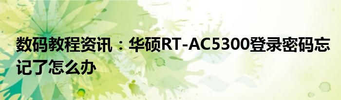 现在各种各样的数码设备在我们的生活当中几乎可以说是无处不在,平时我们使用的手机,IP,电脑等等这些都属于数码设备,那么这些数码设备当中会存在着很多的功能,当然在我们使用的过程当中自然也会出现说各种的问题,那么我们如何才能去解决这些问题以及使用好这些功能呢?这个时候就需要我们去了解这些功能及问题的解决方法,今天小编就来给大家分享下,关于华硕RT-AC5300登录密码忘记了怎么办方面的问题及功能的详细内容,希望下面小编为大家分享的内容对大家来说有一定的帮助哦。解决方法