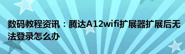 现在各种各样的数码设备在我们的生活当中几乎可以说是无处不在,平时我们使用的手机,IP,电脑等等这些都属于数码设备,那么这些数码设备当中会存在着很多的功能,当然在我们使用的过程当中自然也会出现说各种的问题,那么我们如何才能去解决这些问题以及使用好这些功能呢?这个时候就需要我们去了解这些功能及问题的解决方法,今天小编就来给大家分享下,关于腾达A12wifi扩展器扩展后无法登录怎么办方面的问题及功能的详细内容,希望下面小编为大家分享的内容对大家来说有一定的帮助哦。解决方法
