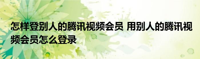 大家好,小琪来为大家解答以上问题。怎样登别人的腾讯视频会员,用别人的腾讯视频会员怎么登录这个很多人还不知道,现在让我们一起来看看吧!