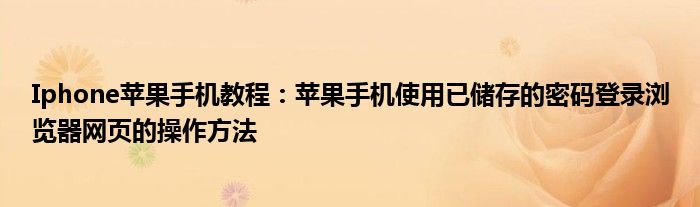 如今使用苹果手机的小伙伴们是越来越多了,那么苹果手机当中是有很多小技巧的,这些技巧很多小伙伴一般都是不知道如何来实用的,就好比最近就有很多小伙伴们想要知道苹果手机使用已储存的密码登录浏览器网页的操作方法 ,那么既然现在大家对于苹果手机使用已储存的密码登录浏览器网页的操作方法 都感兴趣,小编就来给大家分享下关于苹果手机使用已储存的密码登录浏览器网页的操作方法 的一些信息吧。