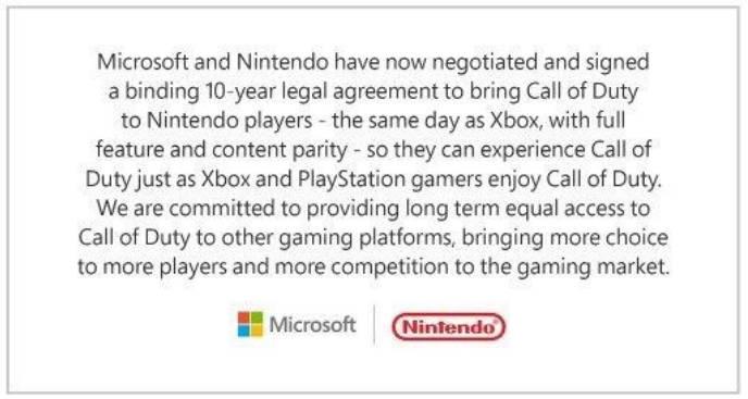 微软宣布和任天堂签了10年的合约,在将动视暴雪收购完成之后,会将《使命召唤》,这一款游戏带给任天堂的玩家,消息公布之后,引来了许多讨论。
