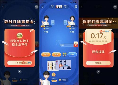 淘宝上线的斗地主大赛游戏,每周都会有对应的积分排名,积分靠前的玩家就可以获得各种各样的奖励。参与全国赛获胜的玩家还有机会获得汽车以及金条、茅台等各种特级大奖。斗地主游戏本身就是一种受众人群非常广泛的游戏,现在线上的这种游戏方式更加的便捷,吸引更多玩家参与到斗地主游戏玩法当中。玩家可以一起组队完成任务,也可以选择单人赛。只要玩家的斗地主技术足够好,在这项活动中肯定会获得各种奖励。