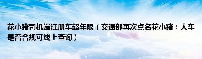大家好,综合小编来为大家讲解下。花小猪司机端注册车超年限,交通部再次点名花小猪:人车是否合规可线上查询很多人还不知道,现在让我们一起来看看吧!