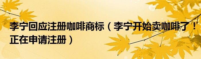 大家好,综合小编来为大家讲解下。李宁回应注册咖啡商标,李宁开始卖咖啡了!正在申请注册很多人还不知道,现在让我们一起来看看吧!
