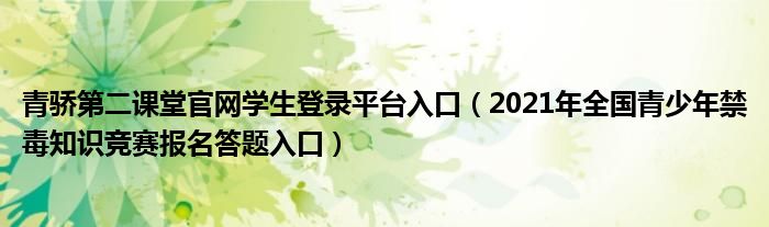 大家好,小安来为大家解答以上的问题青骄第二课堂官网学生登录平台入口,2021年全国青少年禁毒知识竞赛报名答题入口这个很多人还不知道,现在让我们一起来看看吧!
