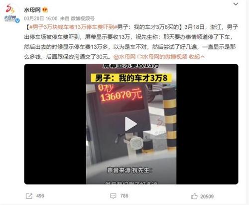 一名男子开着3万元的汽车,从停车场开出被停车场收取了13万元的停车费,这件事在网络上引起了广泛的关注。男子在看到如此高昂的停车费用之后,表示被吓了一跳。当时以为是车型不对,但是在尝试了好几遍之后,仍然显示的是13万多元,于是和保安进行沟通,最终只交了30元。