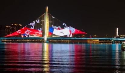环球网在4月8号报道法国总统马克龙在北京时间4月5号到北京时间4月7号,这几天将会对中国进行国事访问结束访华行程之后,在北京时间8号零点左右,法国总统马克龙也在结束访华行程之后在自己的社交媒体账号推特上,用三种语言分别发表了一段文字,分别是谢谢你广州,法中友谊万岁,同时还表达了对广州的感谢,在这一篇推特文章中马克龙还加入了一个视频,是广州猎德大桥的灯光秀,能够在这段视频中可以看到中法两国国家的国籍,包括和平鸽飞起的画面。