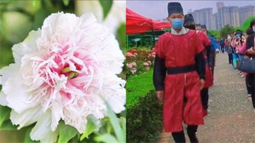 河南洛阳市隋唐城遗址植物园在4月11日被称牡丹当中的珍品银丝贯顶已经开花,周边会有多名带刀侍卫轮值看守,由于前往看牡丹的游客非常的多,每一次观看牡丹的人数都要受到限制,并每人只能观看30秒,由旁边的带刀侍卫看着时间计时。带刀侍卫身上的刀具只是装饰品,给游客们营造更好的氛围。