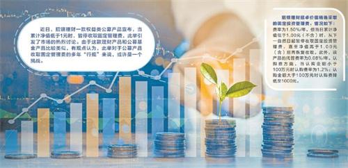 不赚钱就不收管理费是真的吗?近日招银理财所推出的一款权益类公募产品宣布当产品累计净值低于一元的时候,就会暂停收取固定管理费,对于公募产品收取固定管理费的行规来讲这是一个新的挑战,截止到目前为止公募基金2100多亿的费用中管理费能够占取超过六成的比例,管理费的金额就已经接近了1,500亿人民币,尤其是在日渐竞争的趋势之下,近年来我国关于基金行业出现过很多管理费模式创新,基金产品在公募基金高质量发展的背景之下,基民申赎费以及管理费还有其他的费用,也都出现了不断下降的趋势。