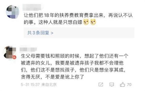 据这名女子介绍,亲生父母家的条件说不上差,在自己出生的时候他们就已经有了建好的楼房,而自己出生两年之后这个家庭又生育了一个男婴,骆女士表示在拒绝亲生父母一家之后。他们总是找各种理由和自己的搭话,最近还表示亲生父母那边身体不好,希望骆女士可以前去照顾,甚至还认为骆女士的养父母一直在阻止她和亲生父母相见,实际上她的养父母这边一直表示尊重她自己的选择。