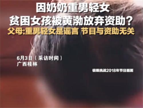 近日,黄渤在参加综艺节目的时候发现自己资助的一位女孩,由于家庭中重男轻女的思想导致这位女孩根本用不到自己的资助资金,于是便选择放弃对这位女孩的资助,一时之间众多网友指责女孩的父母。6月4日,女孩父母公开回应黄渤放弃资助的事件,声称自己本来也不需要得到黄渤的资助,他们的这个声明让众多网友感到愤怒,很多网友发言称黄渤手里的资源可以帮助他们的家庭,让小女孩能够走出大山,让女孩有一个更精彩的人生,遇到这样的父母简直就是女孩的悲哀。