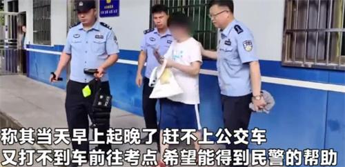 北京时间6月8日是高考的第2天,记者从广东佛山市公安局南海分局获得最新资料,当天早上8:21位考生急匆匆进入南海公安局派出所寻求帮助。对其声称早上起的有点晚,已经无法赶上公交车,再加上身上没有带手机,无法打到车到狮山高级中学考点,希望可以得到警察的帮助。