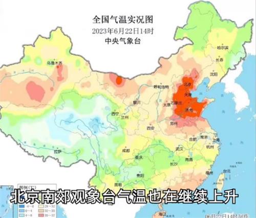 6月22日,中国天气报道当天下午,北京南郊观象台气温达到40.7摄氏度,已经打破了六月份最高气温的记录。截止到当天下午14时,北京汤河口气温达到41.8摄氏度,已经位居全国第一位水平,更是打破了当地观测历史的最高纪录,预计在端午节假后的两天,北京地区仍旧会持续高温烹煮天气。