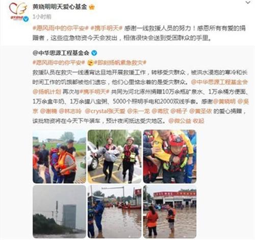 黄晓明本人也是前往了河北地区进行灾情救援,尽管洪水十分的汹涌,但他带领着队伍依旧是在汹涌的洪水当中穿梭,尽可能的将一些受灾人群进行转移,哪怕现场的河水非常的突团结,他也并没有退缩过,这才是一个优质的明星带给大家的积极正能量的作用,不仅捐赠物资,还亲自去现场指挥救援队伍,也希望他能够保护好自己。