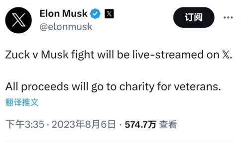 马斯克在自己的动态上面还提到,本次直播获得的所有收益都会捐给退伍军人慈善机构,在6月下旬,Meta计划推出推特竞品,马斯克连续发布推文表示对这种话产品不屑,之后遭到了网友的挑衅,他在这样的情况下还表示“我愿意来场笼中斗,只要他愿意”,让人意想不到的是,随后扎克伯格就在旗下平台Instagram上面发文示意马斯克“把决斗地点发来”,马斯克回应称“拉斯维加斯八角笼”,世界第一首富与世界第十富豪之间的争斗就此展开,这场笼中斗也吸引了很多人的关注。