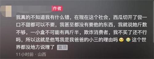 不久前山西太原的一名女生发视频称自己与同伴在太原市的夜市中一家店铺想要购买水果捞,在购买时店家告知一共47元,女生由于价格过高怀疑存在缺斤短两,拒绝购买之后被店家骂你是小三吧。女生因为价格比较高,所以不想买了,之后店家多个人拦着女生不让女生走,在此期间还多次辱骂女生,在女生父亲来的时候,还对其父亲说是你的小三吧。