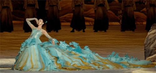 仔细看舞者的群子还能够在裙摆上看到各种造型不同的古建筑,仿佛是一幅巨大的山水画一点青绿在湖面上轻轻游动。据悉舞者穿的这条裙子裙摆长达5米多,重量高达100多斤。舞台上做出的每一个动作、每一个转身都非常巧妙的描绘出了水墨画的精髓,舞者的表演不仅完美的展示了江南水乡的美景,还将中国的传统文化、传统特色传达给观看节目的人。在舞者的舞姿中观众也仿佛欣赏到一个非常美丽的水墨画在精美的舞台中不断流动。