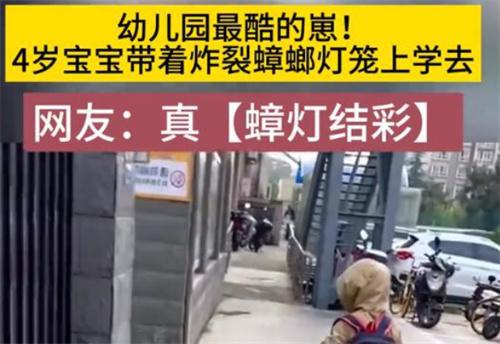 近日,陕西西安一位4岁的宝宝带着蟑螂灯笼上学被拍下来的视频在网络上收获了不小的点击量。人们纷纷为这一外观炸裂的灯笼折服,还佩服制作者的脑洞,做什么形状的不好,竟然能想出制作一个蟑螂外观。