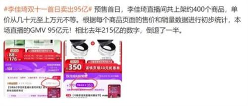 近期,李佳琦在双11预售日当中卖出了95亿的销售额上了热搜,对于李佳琦售卖了95亿的销售量也是让很多人都感到震惊。首先要知道最近关于李佳琦的热点一直都频繁不断,特别是京东采销人员与李佳琦之间的事件也是不断发酵,李佳琦之所以能够卖出95亿的销售量,还是在于直播间一些人员的支持。虽然说舆论的发酵对于李佳琦还是造成一定的影响,但是还有很多消费者是比较支持李佳琦的,甚至至今都并没有出现脱粉的情况。